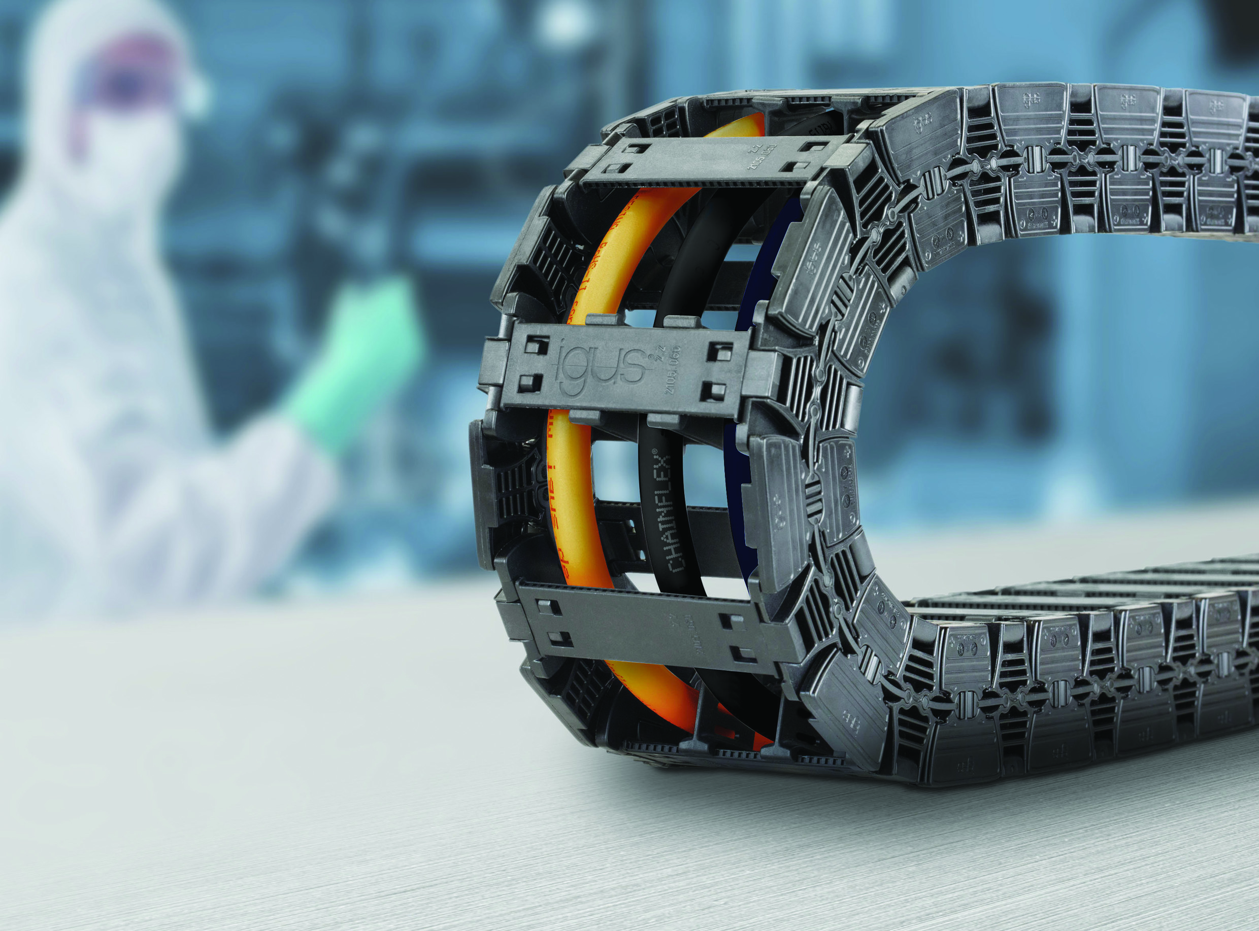 Igus offre un vasto assortimento di catene portacavi con certificazione IPA, facili da montare e che permettono l’alimentazione di macchine impiegate in camere asettiche. Dati i requisiti di qualità sempre più restrittivi nel settore delle tecnologie per camere asettiche, sia da parte della clientela che sul piano della normativa specifica, igus lavora continuamente al miglioramento dei prodotti. Con il nuovo sistema E6.1, gli utilizzatori del collaudato sistema E6 possono contare su una versione ulteriormente ottimizzata, che ha passato subito e brillantemente le prove richieste dalla normativa DIN EN ISO 14644-1 – riconosciuta a livello internazionale nel campo delle tecnologie per camere asettiche – guadagnandosi così l’assegnazione della certificazione ISO Class 1. Rispetto alla versione E6 il nuovo sistema, essendo di peso ridotto, è ancora più facile sia da usare che da montare e anche sul piano della rumorosità igus è riuscita a migliorarne ulteriormente le già ottime prestazioni.