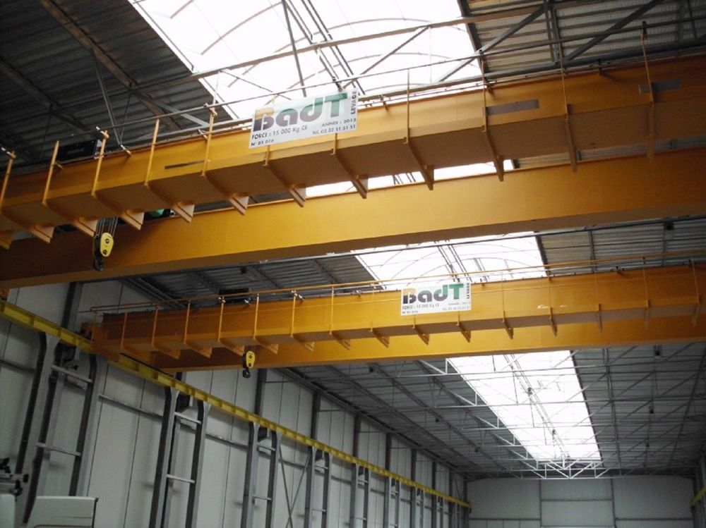 larghezza, consentono lo spostamento dei paranchi praticamente sull’intera larghezza. La sicurezza è garantita da interruttori di finecorsa. Il motore di sollevamento dei paranchi a due velocità e la traslazione orizzontale mediante motore a velocità variabile garantiscono un elevato livello di sicurezza ed una notevole precisione di movimentazione dei carichi.