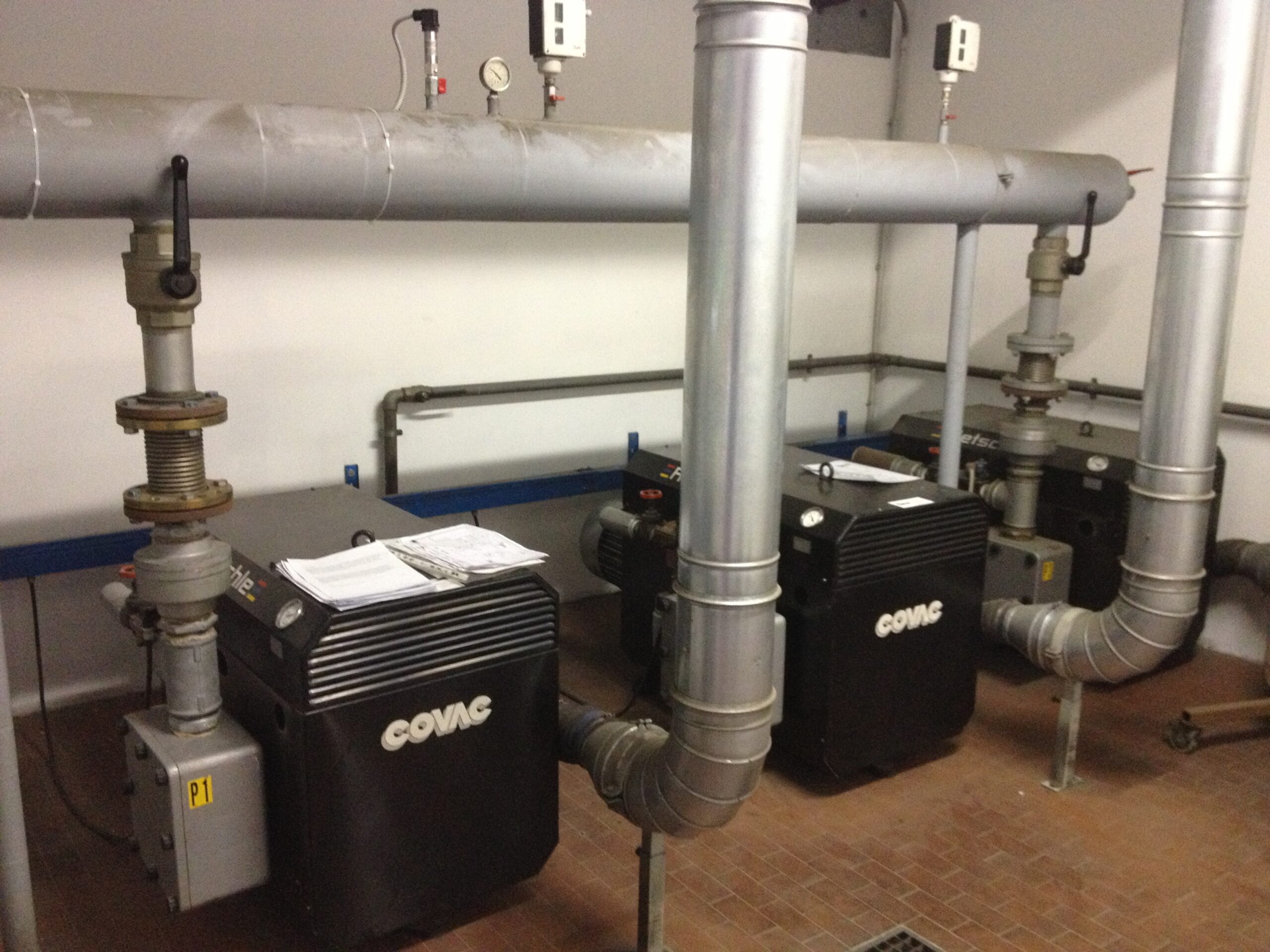 Le pompe per vuoto lubrificate a palette Service Air sono utilizzate nel processo di confezionamento di molti prodotti alimentari, tra cui carni e salumi. Le più diffuse hanno una portata di 300 m3/h, e su una confezionatrice possono anche essere montate in coppia, in base al tipo di prodotto e alla velocità produttiva. Per funzionare, hanno bisogno di lubrificante e filtri disoleatori che separano l’aria dall’olio permettendo di scaricare in ambiente aria pulita. Nonostante i filtri e la manutenzione, per un ambiente pulito e silenzioso è necessario spostare le pompe in locali attigui. Per ovviare al rischio di prestazioni ridotte, l’azienda propone l’acceleratore di vuoto roots, da montare in prossimità della confezionatrice. Tale pompa incrementa la produttività riducendo i tempi di battuta con un residuo d’ossigeno inferiore in confezione. Le pompe per alto vuoto roots funzionano a circuito chiuso, scaricando l’aria aspirata verso la pompa a palette anziché in ambiente. Il funzionamento non prevede parti a contatto e lubrificazione di processo, assicurando pulizia, silenziosità e basso sviluppo di calore.