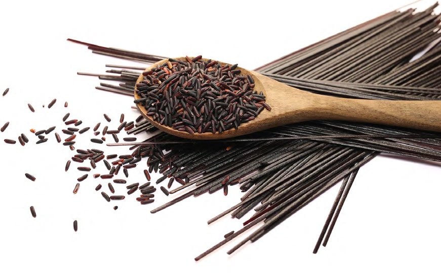 Deve la sua colorazione alla presenza di pigmenti antocianici, un gruppo di composti facenti parte della famiglia dei flavonoidi. Attualmente il riso nero, oltre ad essere una valida scelta per le persone celiache, viene consumato per i benefici che può portare alla salute, quali un’attività antinfiammatoria e proprietà antiossidanti, antidiabetiche e anticancerogene. Il riso nero, negli ultimi anni, vanta una crescente attenzione nel campo della ricerca grazie ai suoi attributi orientati al miglioramento della salute umana, e di conseguenza si stanno sviluppando nuove applicazioni di utilizzo per questo prodotto. Quella che si sta diffondendo maggiormente, soprattutto nel nostro Paese, è la produzione di pasta arricchita con riso nero, tramite l’utilizzo di due tecniche di produzione differenti: