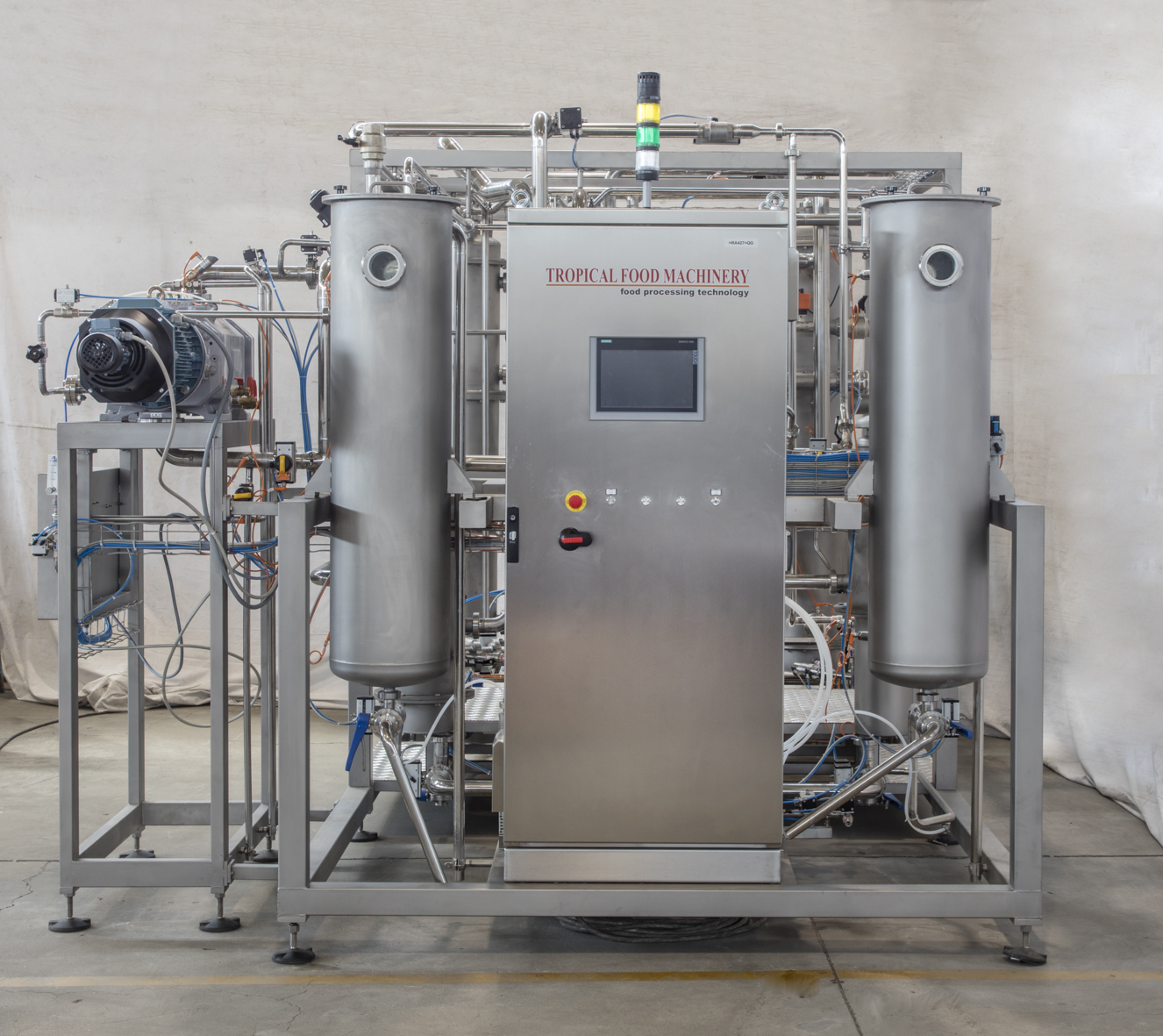 Per questo Tropical Food Machinery ha sviluppato un recuperatore automatico di aromi in grado di raccogliere una parte rilevante di sostanze (percentuale variabile secondo la tipologia di frutta).