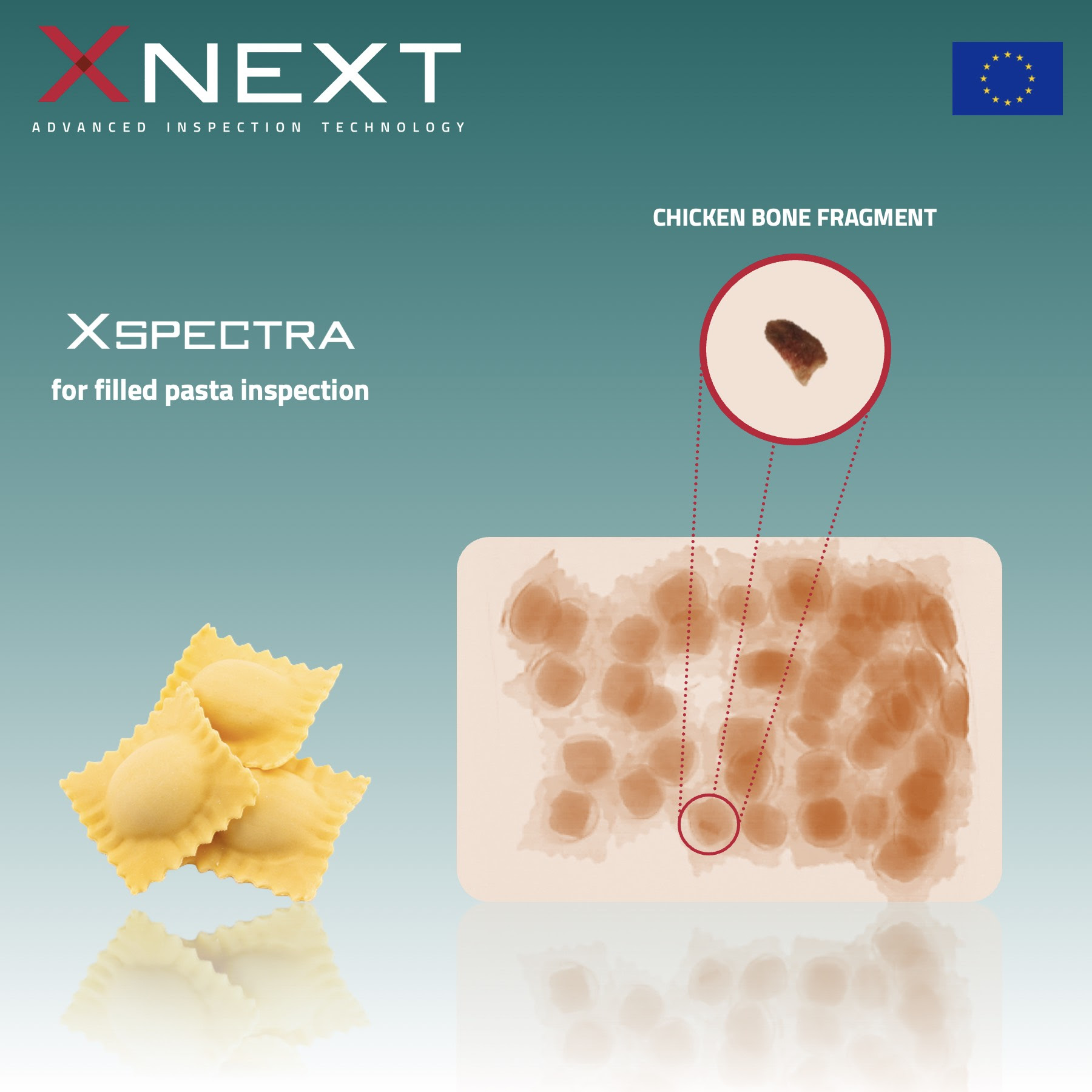 Tale sistema di ispezione unisce fotonica, microelettronica nucleare e intelligenza artificiale, e rappresenta la sinergia perfetta tra componenti hardware di primo livello e software di ispezione XInspector, basato su algoritmi di intelligenza artificiale (Deep Learning) per il rilevamento automatico di corpi estranei a bassa e alta densità e il controllo della conformità di prodotto (volume, forma, dimensioni).