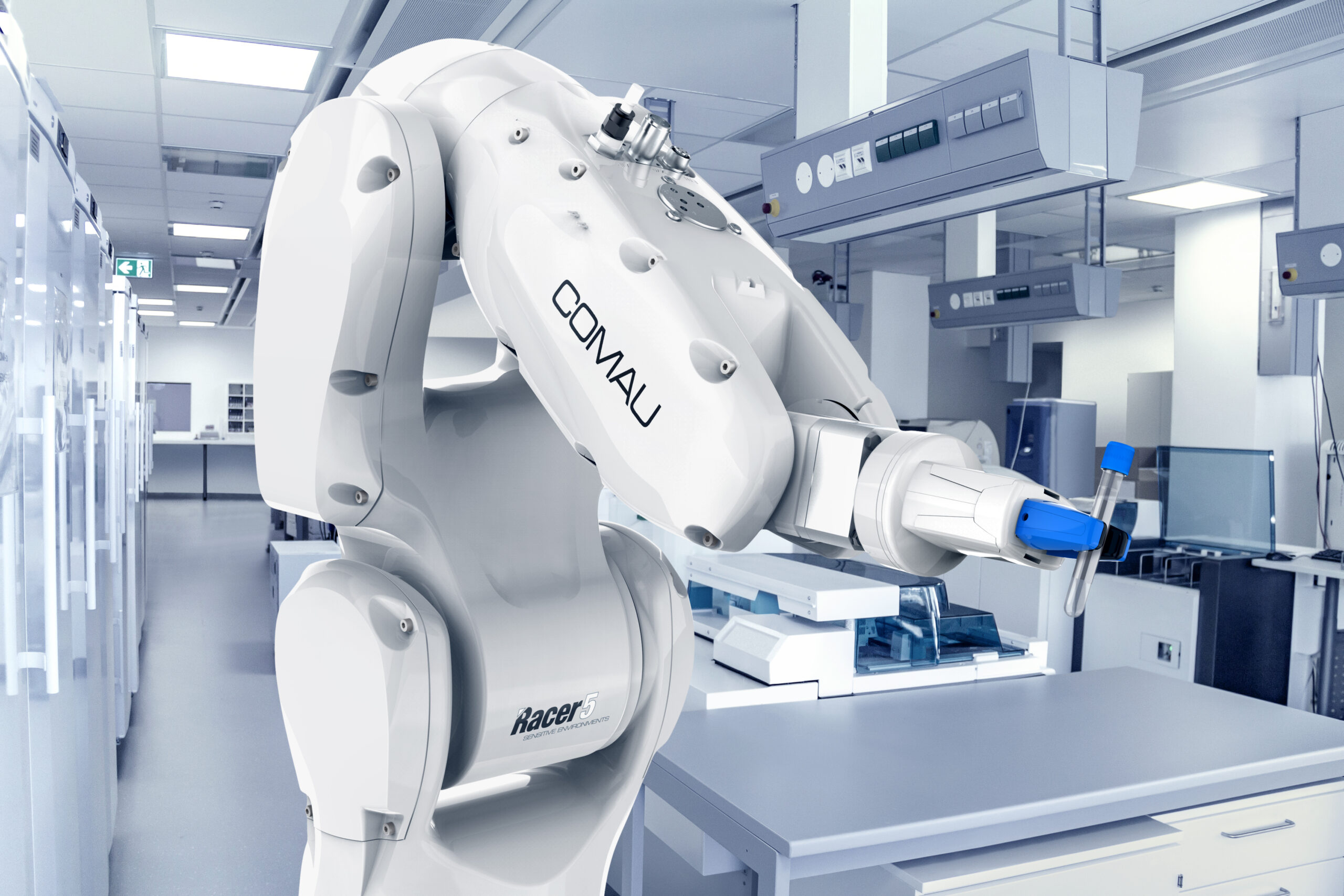 Per ambienti sensibili come quello alimentare Comau ha realizzato un robot industriale specifico: Racer-5 SE con grado di protezione IP67, resistente a calore, grasso, alcol, detergenti aggressivi e acqua grazie a un particolare rivestimento protettivo.