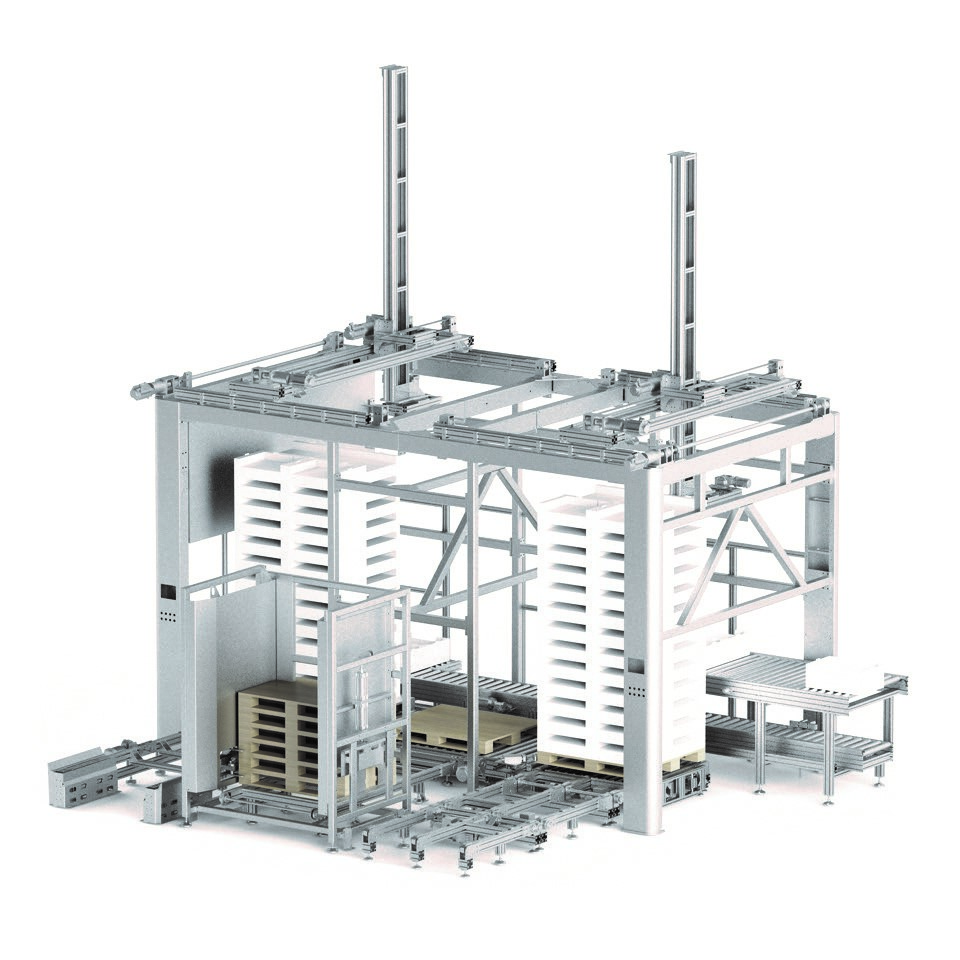 Permette di lavorare su più linee di pallettizzazione o depallettizzazione contemporaneamente, movimentando prodotti con diverse caratteristiche strutturali, giocando un ruolo chiave nella salvaguardia dell’addetto all’impianto che si vede sgravato dal sollevamento di carichi pesanti e, grazie alle reti perimetrali a norma CE, può lavorare in sicurezza.