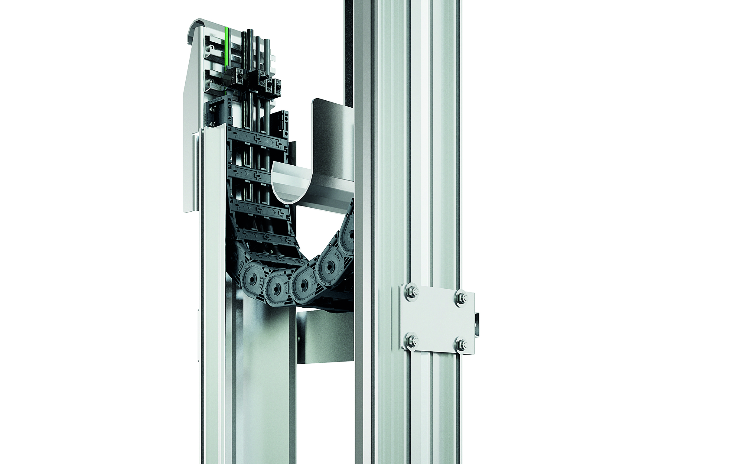 Le movimentazioni verticali caratterizzano l’intralogistica. Esse sono comuni e nello stesso tempo impegnative, come ad esempio nei magazzini di minuterie con trasloelevatori ad alta velocità (RBG) agiscono elevate accelerazioni trasversali su catene portacavi, cavi e fissaggi, con spesso conseguente elevata rumorosità e alti costi di manutenzione. TSUBAKI KABELSCHLEPP affronta proprio questi aspetti con il canale di guida verticale (TKVG).