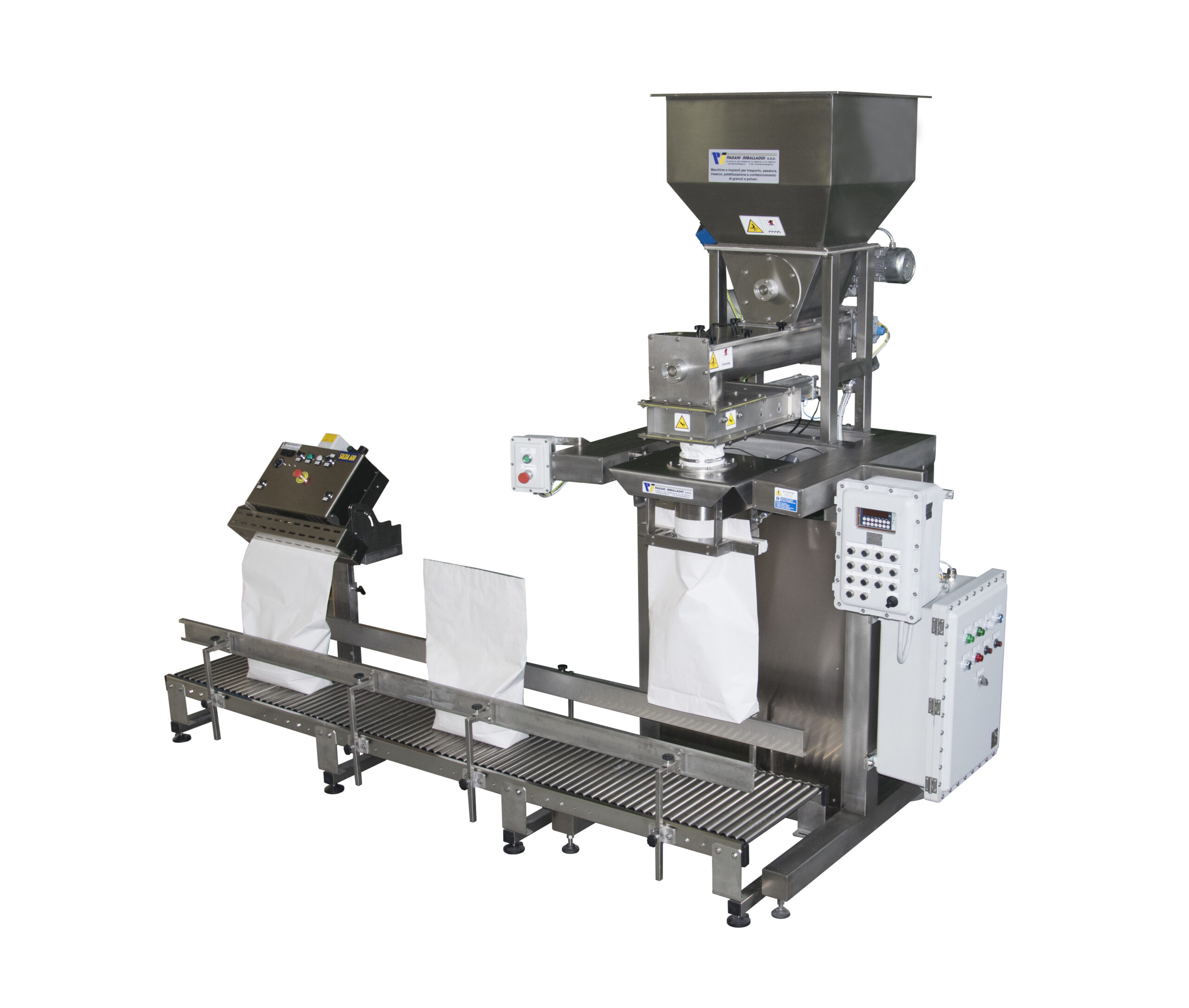 Fiore all’occhiello di Pagani Imballaggi sono i sistemi di pesatura e insacco: dai modelli semiautomatici per la piccola e media impresa alle linee automatiche per la grande industria.