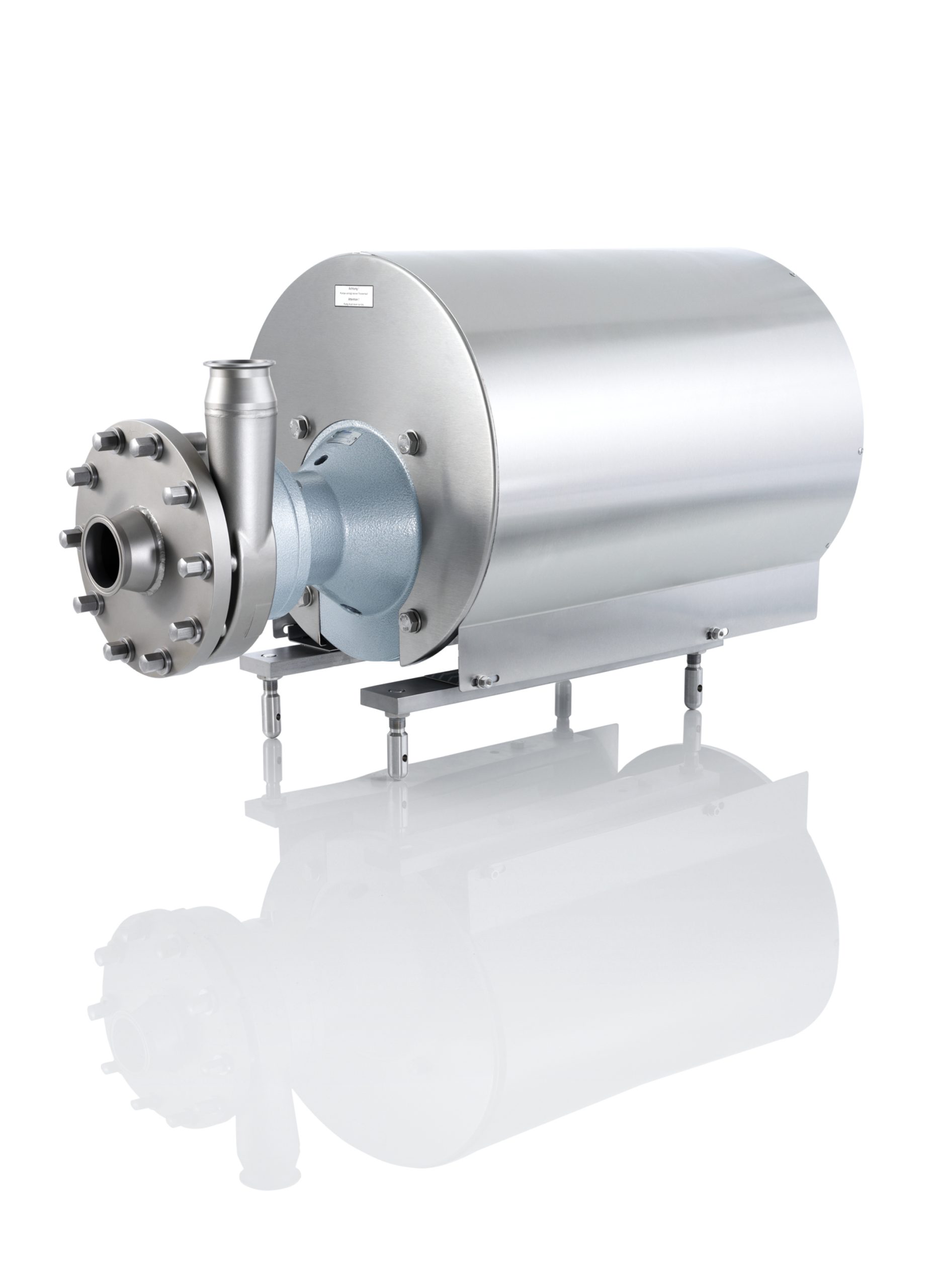Robuste, le pompe FP dal rendimento elevato trattano il prodotto in modo delicato. Abbinate a bassissimi valori di NPSH, coprono l’intero campo di portata fino a 550 m3/h con prevalenze fino a 15 bar. La foto mostra il modello FPH, evoluzione della FP, che può gestire pressioni di sistema fino a 80 bar. Disponibile in 19 taglie, e compatibile con i sistemi CIP e SIP.