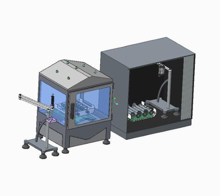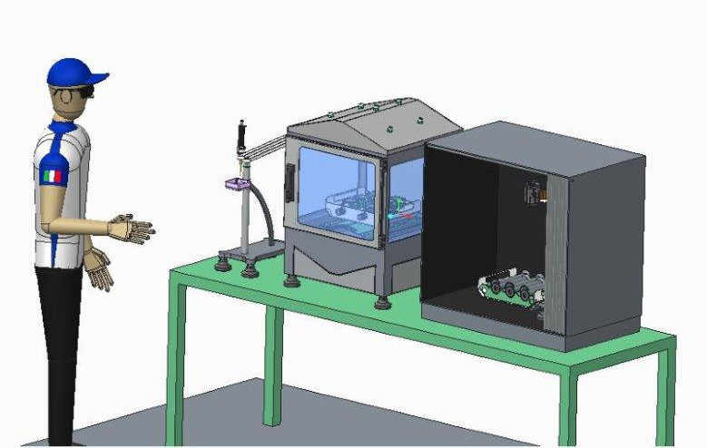 Camera con funzione di test di lavaggio (per sterilizzazione e lavaggio); camera di analisi (camera oscura) per verifica del residuo organico presente sui campioni (analisi dell’immagine ai raggi UV) tramite sistema automatico di rilievo immagini (National Instrument)