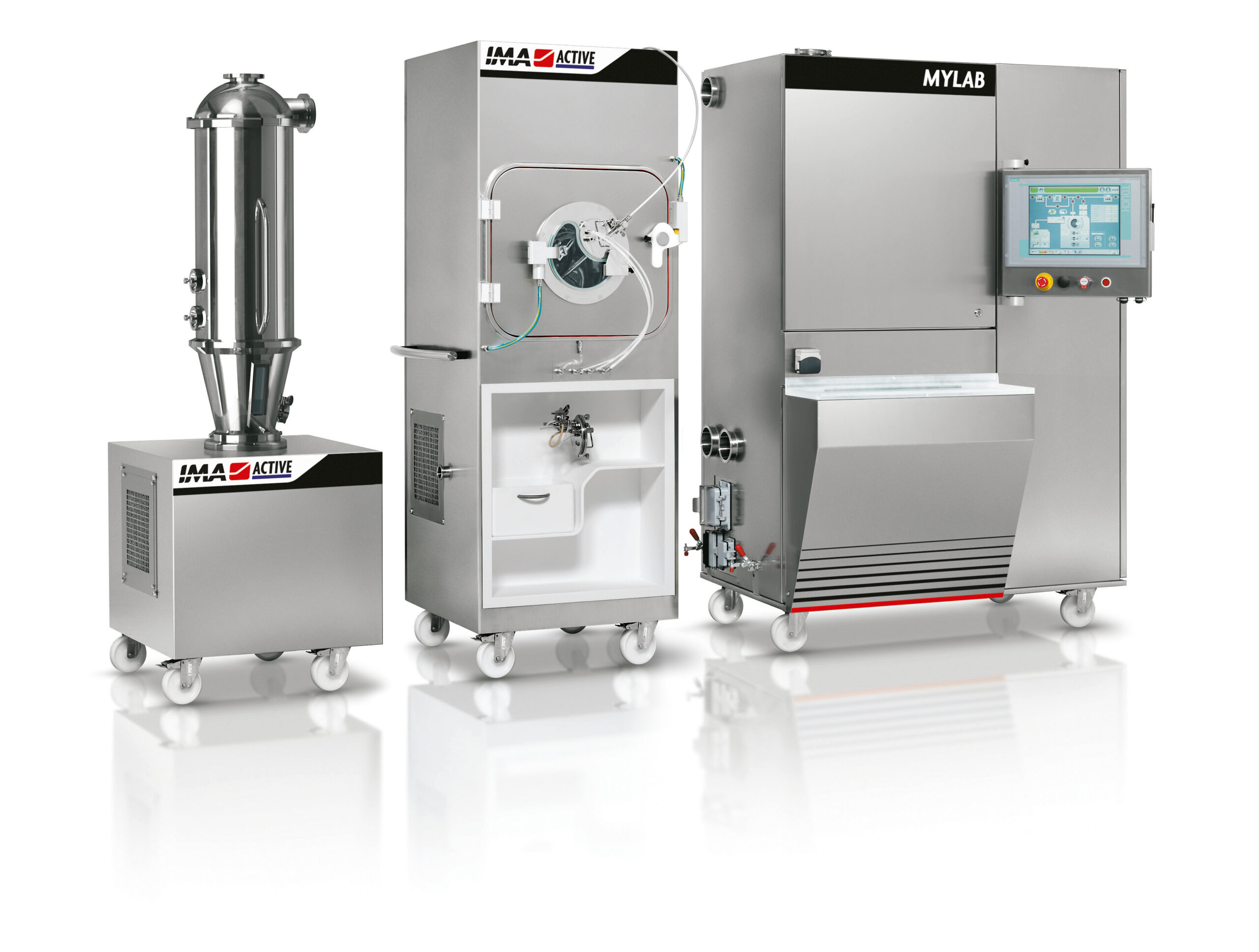 Mylab è una macchina di piccola taglia pensata da IMA per attività di ricerca e sviluppo che può essere usata per processi di granulazione e di rivestimento nuclei. Per le sue caratteristiche è adatta anche per studi di formulazione e scale-up per ottenere facilmente i requisiti della produzione in grandi lotti.
