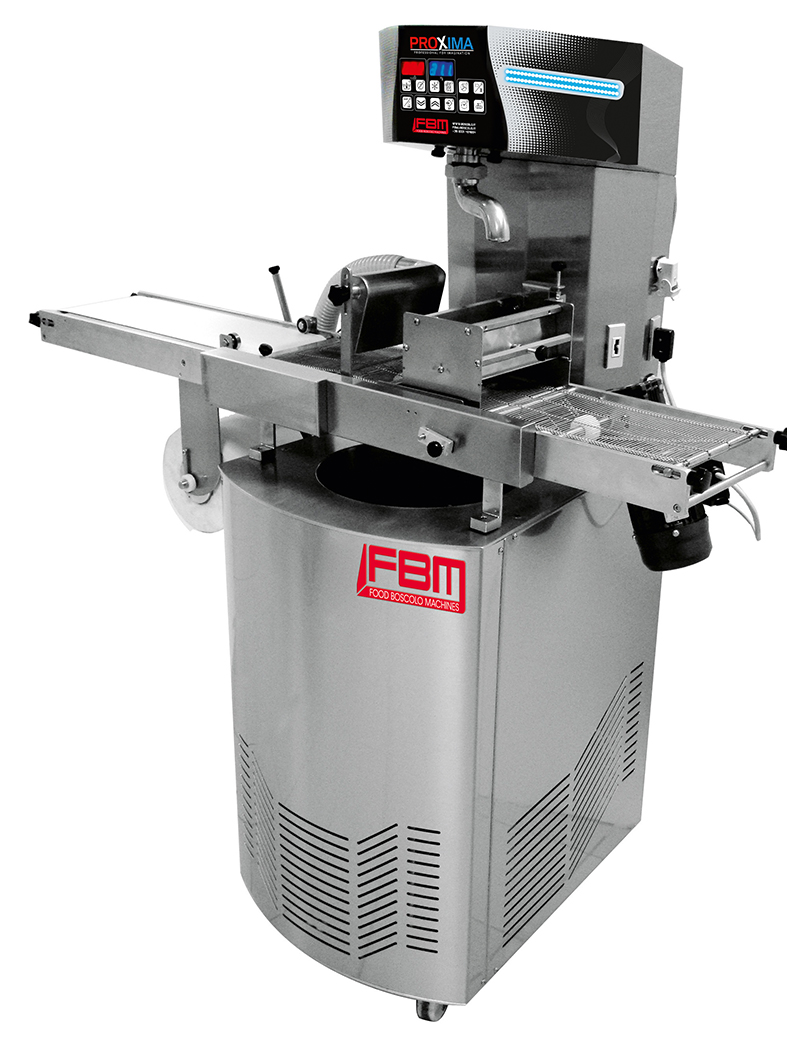 Proxima è una temperatrice per cioccolato da 25 kg, sviluppata da FBM con un forte orientamento al risparmio energetico. Il sistema di tempera continua su cui si basa integra due tecnologie distinte per il riscaldamento e il raffreddamento.