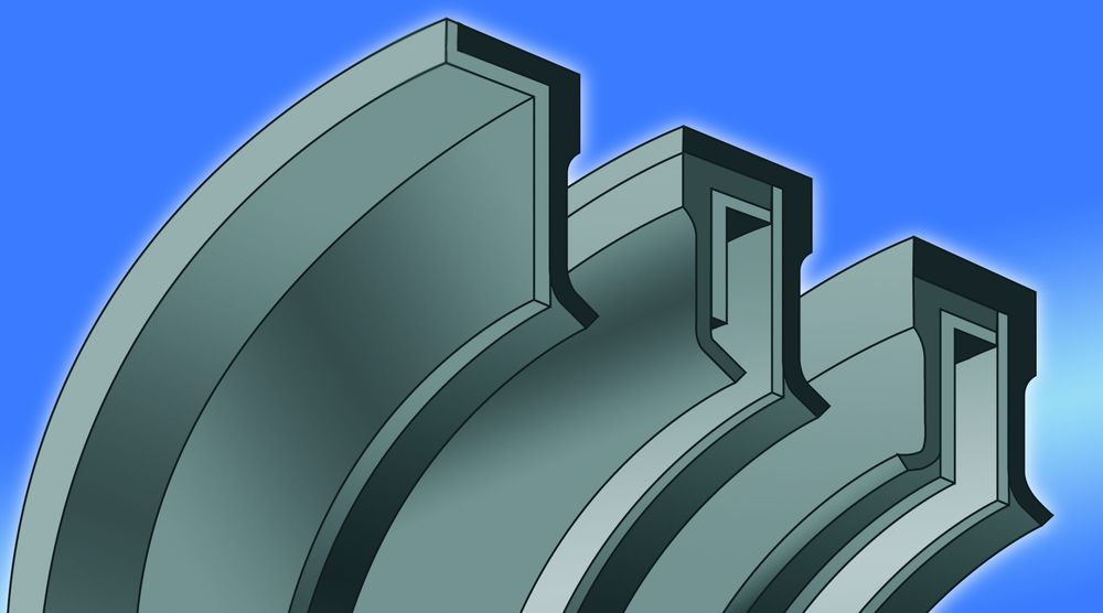 Le tenute Domsel®, proposte da Pantecnica di Rho (Mi), sono definite a “membrana” per la loro particolare struttura che le differenzia dalle altre guarnizioni in elastomeri prodotte per la tenuta radiale su alberi e organi rotanti; risolvono problemi di tenuta caratterizzati da alte velocità periferiche, elevate pressioni del fluido da tenere, alte temperature e carenza o assenza di adeguata lubrificazione. Le prerogative strutturali sono il limitato spessore della membrana, l’assenza della tradizionale molla toroidale di pretensionamento e i labbri di tenuta che esercitano sull’albero l’interferenza minima necessaria per assicurare la tenuta del fluido anche in assenza di pressione. Il momento di attrito tangenziale e il calore sviluppati in rotazione dai labbri di tenuta risultano del 50-65% inferiori a quelli sviluppati da altri anelli in elastomero, in condizioni comparabili. Per merito del basso attrito e del limitato sviluppo di calore, le tenute Domsel® possono sopportare velocità periferiche fino a 32 m/sec, pressioni del fluido fino a 10 (15) bar e temperature operative da -50 a +200°C (correlate all’elastomero). Le dimensioni standard sono conformi alla norma DIN 3760 per alberi con Ø da 4 a 380 mm. Le tenute sono prodotte in cinque versioni standard e, su richiesta, in altre cinque speciali. Nelle versioni standard due tipologie sono costituite da un’unica membrana – per la tenuta unidirezionale del lubrificante del sistema o del fluido in pressione – e tre da due elementi a membrana per tenuta unidirezionale o bidirezionale; le due membrane sono tra loro a opportuna distanza per ottenere una “camera grasso” di contenimento del lubrificante idoneo ad assicurare lubrificazione e lunga durata della tenuta.