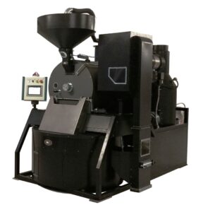La foto mostra il modello RM 60, le cui potenzialità sono: 60 kg/ciclo per un tempo di 12/18 min, produttività 240 kg/h, potenza 280 kW, diametro scarico 250 mm, alimentazione a metano o gpl. Questa macchina è dotata di dispositivi studiati e sviluppati appositamente per permettere di ottimizzare la tostatura.
