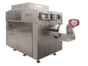 Il tritacarne frantumatore Thor di Velati ha due coclee poste una sopra l’altra secondo un asse verticale.