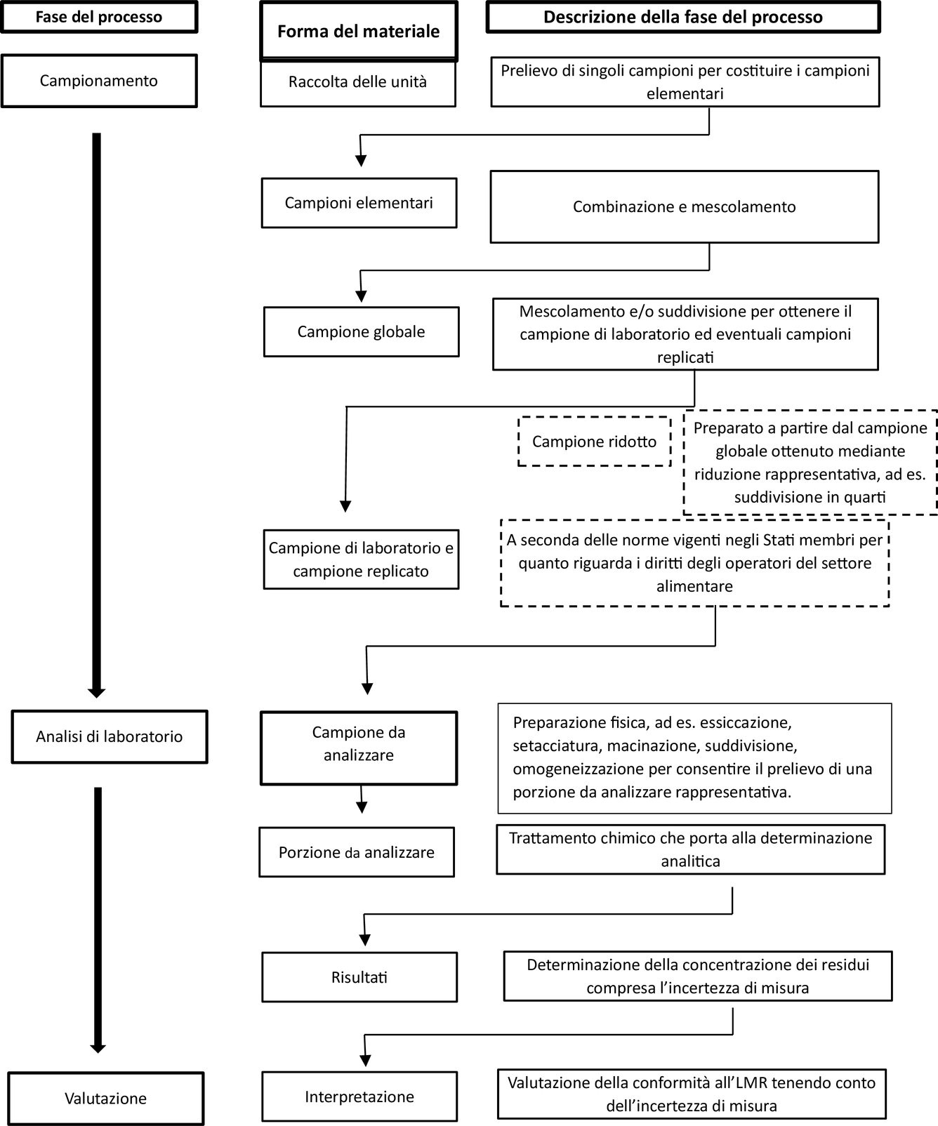 Il laboratorio deve preparare il campione da analizzare a partire dal campione di laboratorio separando la porzione del prodotto da analizzare, ossia la parte di prodotto a cui si applica l’LMR (5), e successivamente mescolandola, macinandola, tritandola finemente, sminuzzandola ecc. per prelevare porzioni da analizzare con bias di sottocampionamento minimi. La preparazione del campione da analizzare deve riflettere la procedura utilizzata per la fissazione degli LMR e quindi la porzione da analizzare può comprendere parti che di solito non vengono consumate.
