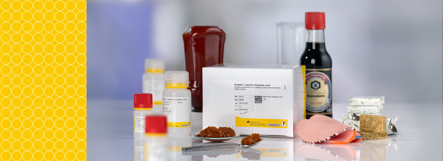 Per monitorare la quantità di questi additivi, R-Biopharm ha sviluppato il kit di analisi EnzytecTM Liquid L-Glutamic acid, che permette di dosarli in due semplici passaggi analitici, utilizzando uno spettrofotometro. I reagenti sono stabili e pronti all’uso, e la preparazione del campione è semplificata: nessuna deproteinizzazione, solo estrazione in acqua calda.