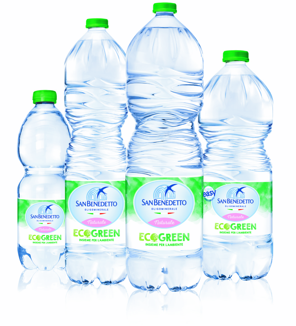San Benedetto ha registrato inoltre, dal 2013 al 2018, una riduzione del peso delle bottiglie della linea Ecogreen da 0,5L, 1L, 1,5L e 2L rispettivamente del -5%, -18%, -18% e -10%.