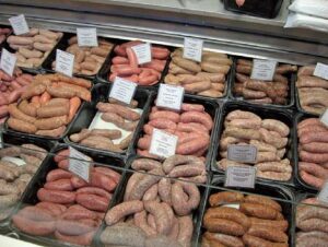 I composti volatili delle salsicce ottenute da processi di fermentazione giocano un ruolo fondamentale nello sviluppo delle caratteristiche aromatiche del prodotto. Nonostante in letteratura siano disponibili diversi studi sull’influenza di differenti parametri tecnologici (condizioni e durata della stagionatura, presenza di additivi, tipologia di microflora ed altro ancora) sull’evoluzione di tali composti, poche sono le informazioni che analizzano l’effetto causato dall’atmosfera in cui viene confezionato il prodotto. Perciò, in uno studio recente, effettuato da ricercatori italiani (Summo et al., 2010a) sono stati monitorati i cambiamenti nell’evoluzione del profilo aromatico di campioni di salsicce conservati(per 3 mesi, al buio ed a 4°C) in tre differenti condizioni MAP (Modified Atmosphere Packaging): MAP1 (70:30 N2/CO2), MAP2 (80:20 N2/CO2) e MAP3 (95:5 N2/CO2). I risultati dimostrano che, in tutti i casi, le concentrazione dell’esanale, dell’ottanale e del nonanale, composti indicatori dell’ossidazione dei lipidi, sono caratterizzati da significativi aumenti durante lo stoccaggio. Ciò evidenzia che tale ossidazione può avvenire anche a basse concentrazioni di ossigeno. Tuttavia, l’ottanale ed il nonanale presentano livelli significativamente inferiori nei prodotti conservati in MAP1 ed in MAP2 rispetto a quello stoccato in MAP3. Secondo gli autori, questo risultato suggerisce che il processo ossidativo è favorito dalla presenza di basse concentrazioni di CO2. È stato, inoltre, osservato che i componenti principali dell’aroma del prodotto derivano dalle spezie utilizzate nella formulazione (circa l’80%) e dall’attività microbica responsabile della fermentazione (circa il 15%). Infine, la variabile tempo si è dimostrata in grado di esercitare effetti significativi su un maggior numero di composti (circa 70) rispetto alla variabile MAP (circa 20). Concludendo, gli autori sostengono che siano necessari ulteriori studi per testare e identificare altre atmosfere di stoccaggio in grado di diminuire la velocità della degradazione ossidativa dei lipidi del prodotto.
