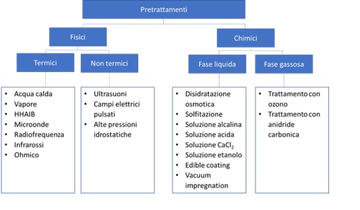 Figura 1: Sintesi dei principali trattamenti preliminari applicabili alle matrici alimentari per favorirne il processo di essiccamento.