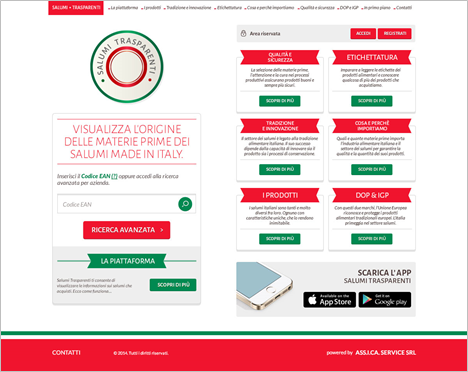 Durante l’Assemblea annuale 2014 di ASSICA, Associazione Industriali delle Carni e dei Salumi, è stato presentato il progetto Salumi Trasparenti (www.salumitrasparenti.it), una piattaforma online in cui verrà data la possibilità agli utenti di verificare, attraverso il codice EAN (1) , l’origine della materia prima impiegata per realizzare i salumi “Made in Italy”. Salumi Trasparenti nasce per rispondere alla richiesta di maggiori informazioni emersa anche dalla Relazione della Commissione al Parlamento europeo e al Consiglio sul tema dell’etichettatura d’origine nei prodotti che utilizzano la carne come ingrediente, di dicembre 2013.