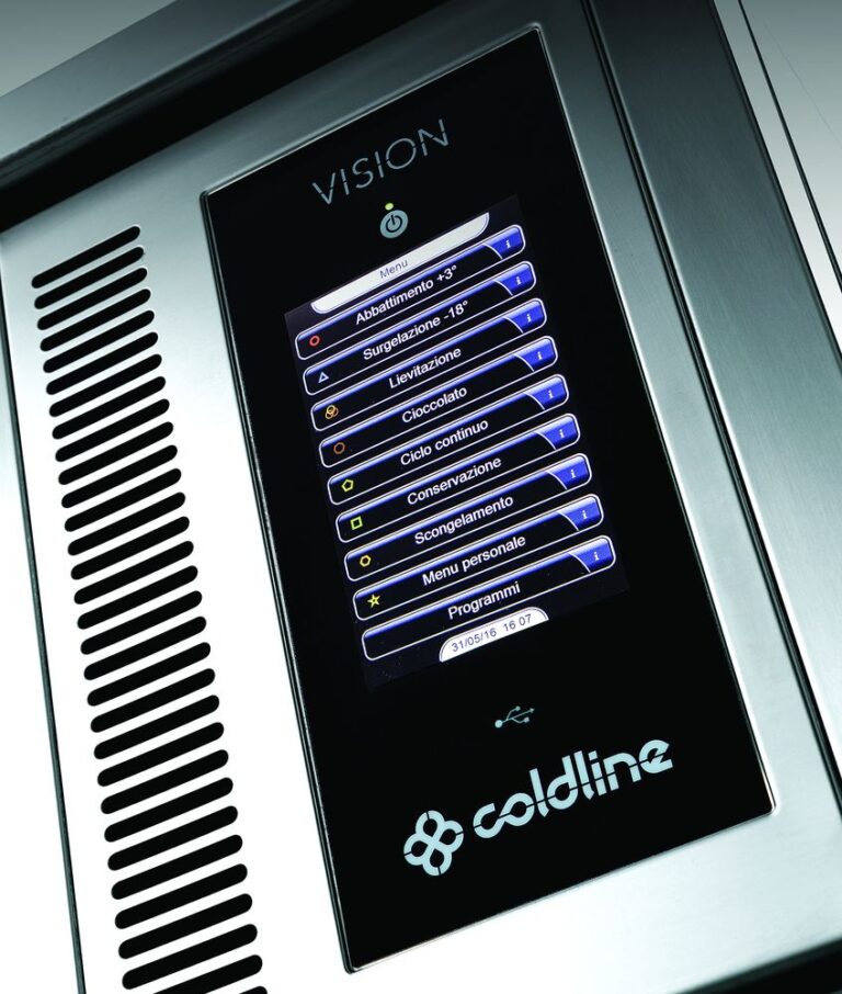 Coldline, specializzata nella produzione di apparecchiature refrigerate, propone la linea di abbattitori di temperatura multifunzione Vision. Abbattimento, surgelazione, decongelamento, lievitazione, conservazione e cristallizzazione del cioccolato rendono questa macchina molto dinamica, adatta per lavorare sulle 24h. L’umidificatore permette il controllo dell’umidità dal 45 al 95%. La ventilazione può essere modulata dal 30 al 100%, la temperatura…