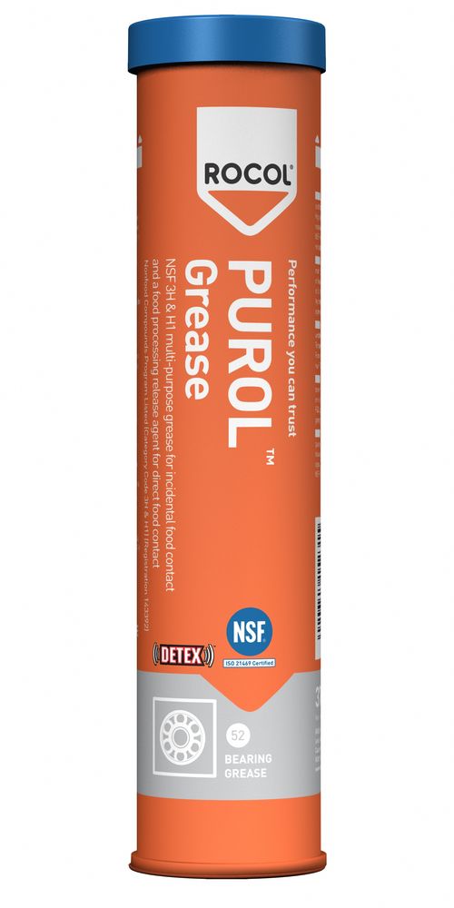 Rocol presenta Purol, grasso alimentare certificato NSF-H1 e 3H. Ideato per agire anche come agente distaccante, può essere usato su tutte le parti dei macchinari che entrano in contatto diretto con il cibo (lame, guide, cuscinetti e guarnizioni di piatti tritatutto, mixer e affettatrici). Il grasso aderisce meglio dell’olio, quindi è più efficace come agente…