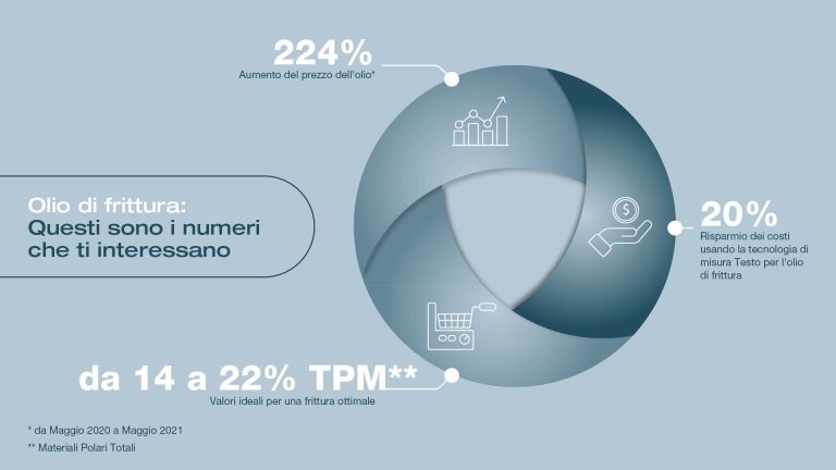 Per registrare la qualità dell’olio di frittura in modo rapido ed efficace rispetto ai costi, Testo offre il robusto tester dell’olio di frittura testo 270