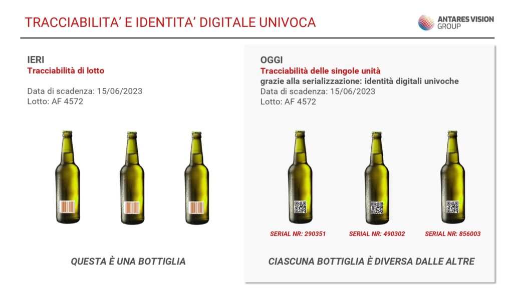«Secondo Deloitte nell’ultimo anno il tasso di crescita degli investimenti nella trasformazione digitale è stato pari al 15% – spiega Micaela Orizio, Marketing & Communication Director Antares Vision -. Il dato è oggi il nuovo petrolio e questo impone un cambio di paradigma. Parliamo di value chain integrata: dal dato fisico al dato digitale; dal dato digitale all’informazione; dall’informazione alla creazione di valore. Se in passato la tracciabilità era di lotto, oggi si è passati a una tracciabilità delle singole unità al fine di creare un’identità digitale univoca attraverso un QR Code univoco. Il dato trasformato in informazione e contestualizzato apporta numerosi benefici: monitoraggio della produzione, monitoraggio dei trend di qualità, ottimizzazione e pianificazione dei processi, misurazione dell’efficienza».