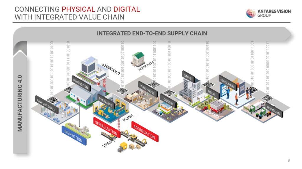 È questa la mission di Antares Vision Group, gruppo internazionale specializzato nella protezione di prodotti, di profitti, delle persone e del pianeta attraverso sistemi di ispezione per il controllo qualità, soluzioni di tracciatura per l’anticontraffazione e la trasparenza della filiera, gestione intelligente dei dati per l’efficienza produttiva e la digitalizzazione dell’intera filiera.