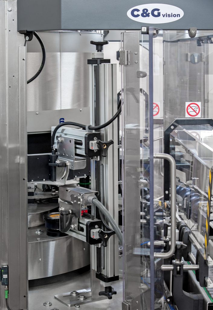 Uno dei fiori all’occhiello di queste nuove macchine è il C&G Vision System, un avanzato sistema di centraggio basato su telecamere ad alta risoluzione. Nonostante le innumerevoli possibilità di orientamento, il sistema è particolarmente apprezzato per la sua semplicità d’uso: user friendly e intuitivo, consente agli operatori di ottenere risultati eccellenti con facilità. Grazie a questa tecnologia, l’etichettatrice è in grado di orientare con estrema precisione simboli, embossing, debossing, saldature e riconfezionamenti su contenitori sia in vetro che in PET, garantendo un risultato impeccabile e una qualità superiore nel posizionamento delle etichette.