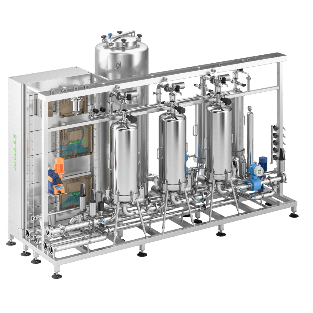 Oggi le linee d’imbottigliamento richiedono la completa automazione della microfiltrazione finale, considerata un processo-speciale, il controllo sui valori in ossigeno per mantenere la freschezza dei vini nel tempo e il rispetto del tenore finale di anidride carbonica per i concomitanti aspetti sensoriali e normativi. Questi tre aspetti possono essere gestiti attraverso due impianti: Sofos® e Mastermind® Remove Plus di Ju.Cla.S., dinamica azienda del VASONGROUP che progetta e realizza macchinari innovativi per il settore enologico e alimentare. Questi impianti automatici dialogano con la riempitrice a formare un unicum operativo: attraverso un display touch screen è possibile impostare una “ricetta” unica, mirata sul prodotto da imbottigliare per garantirne la stabilità microbiologica e il tenore di O2 e CO2 desiderati. Gli impianti possono essere isobarici e contribuiscono al risparmio energetico e di risorse.