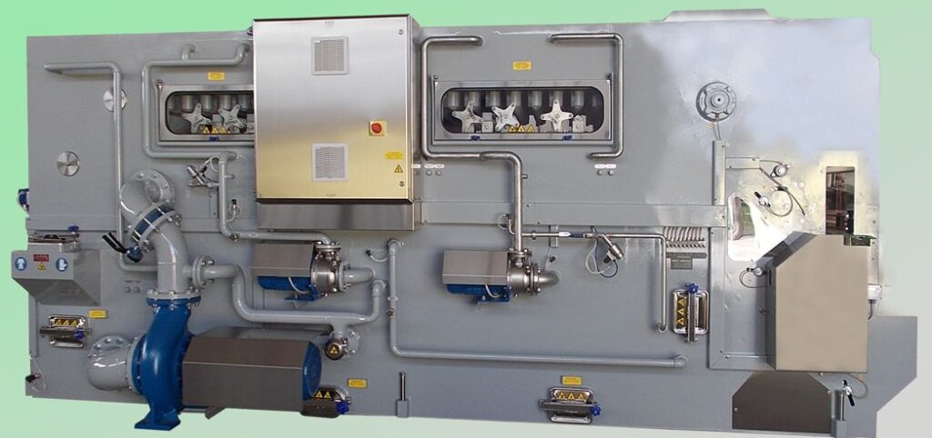 AKOMAG offre una produzione variegata che comprende lavabottiglie, sciacquatrici e sterilizzatrici a immersione per bottiglie di vetro o PET e boccioni, lavacasse e accessori vari di complemento. Molto ampia è la scelta delle lavabottiglie, la cui potenzialità varia ovviamente in base al modello, e va da 500 fino a 60.000 pezzi/h. Per quanto riguarda il lavaggio di bottiglie a basse capacità produttive, la gamma offre GENESI, disponibile in dimensioni molto contenute per poter essere inserita in qualsiasi ambiente operativo. La serie ha un ciclo di lavaggio semplice ma funzionale, che permette di abbattere i costi d’esercizio (acqua, energia, detergenti) senza influire negativamente sulla pulizia delle bottiglie da riciclare, il completo distacco delle etichette e la loro totale evacuazione all’esterno. La particolare facilità d’uso e di manutenzione incrementa la produttività e limita i fermi macchina. La modularità della serie GENESI permette al cliente di “costruirsi una macchina su misura”, adattandola di volta in volta ai diversi tipi d’utilizzo (acqua, vino, olio, birra, bibite). Costruita in conformità della direttiva macchine, è dotata di tutti gli accessori necessari al buon funzionamento: uno scambiatore di calore costruito con tubi d’acciaio inox disposti geometricamente per impedire il deposito di fanghi o precipitazioni varie che ne andrebbero a compromettere il rendimento o, in alternativa, una camera di combustione incorporata con funzionamento a bruciatore diretto. Protezioni antinfortunistiche e antipolvere a protezione dello scarico delle bottiglie; ingrassaggio raggruppato; valvola economizzatrice per l’acqua di rete e controllo automatico della presenza d’acqua nell’ultima stazione di risciacquo; variatore elettronico di velocità; sicurezza elettronica sul riduttore principale, per arrestare la macchina in caso di sovraccarico; pompe di spruzzatura con corpo e girante d’acciaio inox Aisi 316 e filtri di protezione; valvole per lo svuotamento del macero e delle vasche di spruzzatura; quadro di comando orientabile d’acciaio inox; impianto elettrico IP55; manometri e termometri a portata visiva dell’operatore, sono le dotazioni principali che caratterizzano la serie. La serie è inoltre predisposta per l’introduzione di soda liquida e additivi nel bagno e nella vasca detergenti, nonché di prodotti disinfettanti nelle vasche di spruzzatura. Le spruzzature interne (eseguite con ugelli rotanti autopulenti) ed esterne sono ad alta pressione, facilmente smontabili per la normale pulizia e la manutenzione. Il carico e lo scarico delle bottiglie è completamente automatico, e perfettamente sincronizzato con il movimento della catena principale.