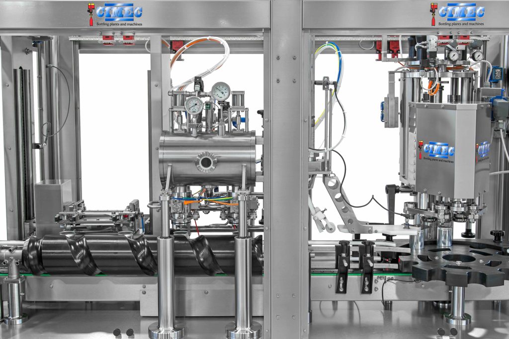 Per rispondere alle esigenze del mercato CIMEC ha progettato un nuovo monoblocco per la sciacquatura, il riempimento e la chiusura di bottiglie e lattine. Un monoblocco compatto, due tipologie di contenitori, quattro funzioni. Adatto ai produttori di birra, vino e bevande che devono imbottigliare o “inlattinare” piccoli lotti e che sono alla ricerca di una linea automatizzata in grado di preservare la qualità del loro prodotto e di aumentare l’efficienza delle operazioni di sciacquatura, riempimento e chiusura, abbattendo i tempi morti delle operazioni manuali.
