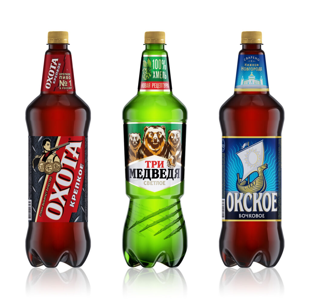 La nuova shape dei brand di Heineken Russia 3 Medvedya, uno dei brand nazionali russi più conosciuti, Okhota e Okckoe, si rivela semplice e eye-catching e, allo stesso tempo, flessibile grazie alla possibilità di cambiarne facilmente l’estetica e il formato attraverso l’applicazione di inserti intercambiabili: questo intervento consente di inserire nuove decorazioni, di spostare e ridimensionare la zona etichetta e, in ultima, di modificare il volume, anche in previsione di futuri down-sizing ai formati da 1.30 l e 1.25 l.