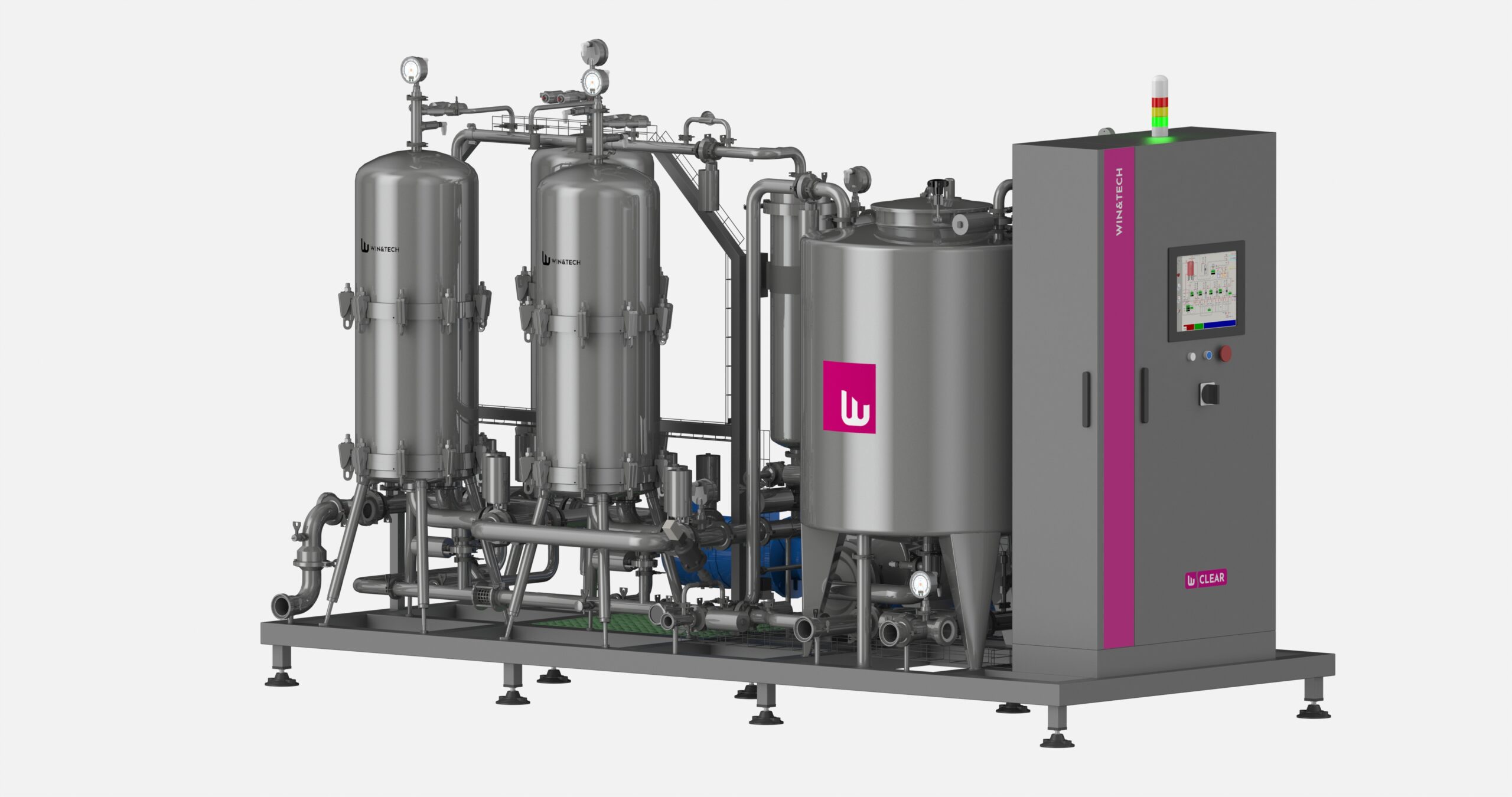Gli impianti Win&Clear di Win&Tech si basano sulla tecnologia di filtrazione frontale. Il vino non ha necessità di essere ricircolato e le membrane di microfiltrazione utilizzate sono limitate alla micrometria necessaria al prodotto da filtrare. Tutto questo permette di mantenere inalterate le caratteristiche organolettiche del prodotto. Gli impianti Win&Clear consentono di ottenere gli stessi risultati dei sistemi tradizionali, con un abbattimento generale dei consumi. L’utilizzo di pompe a ridotta potenza permette un forte risparmio energetico, ed il lavaggio degli impianti tramite il sistema a ricircolo garantisce un consumo ridotto dei volumi d’acqua ed un utilizzo inferiore di prodotti chimici.